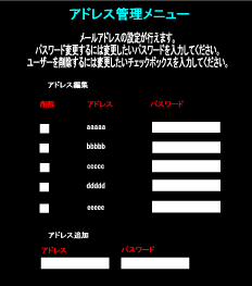 メール管理者用設定画面