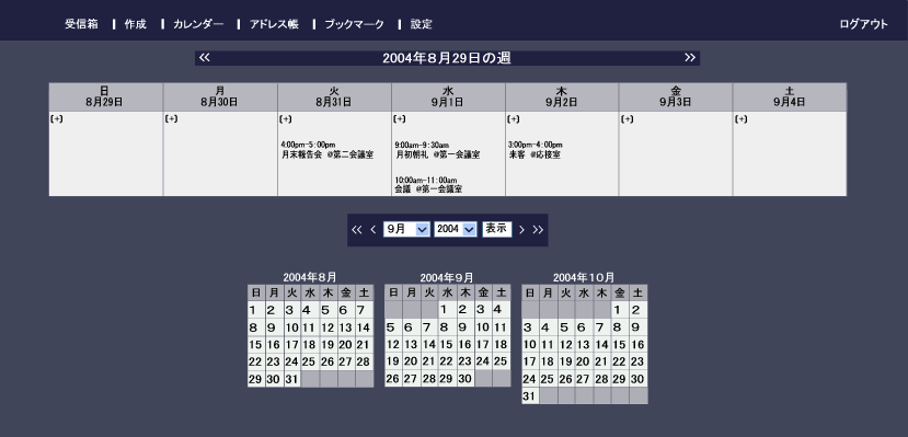 | WEB MAIL機能からスケジュール管理が行えます。 |